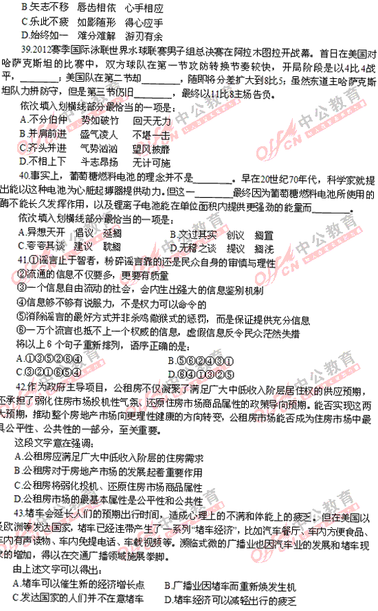 2012年福建秋季省考行測(cè)