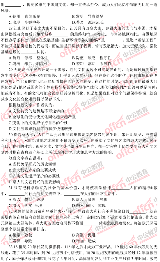 2014年黑龍江公務(wù)員考試行測(cè)