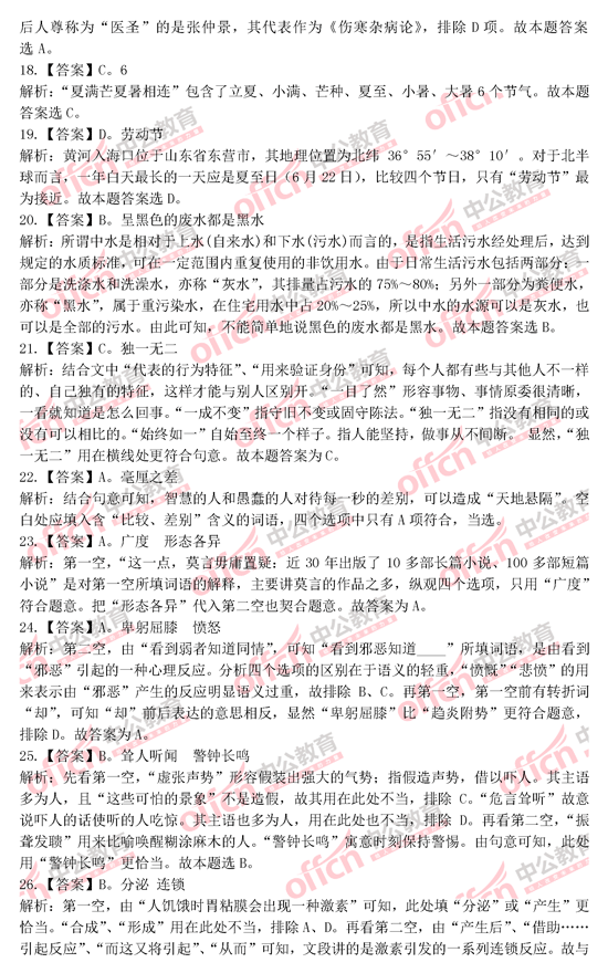 2014年黑龍江公務員考試行測答案解析