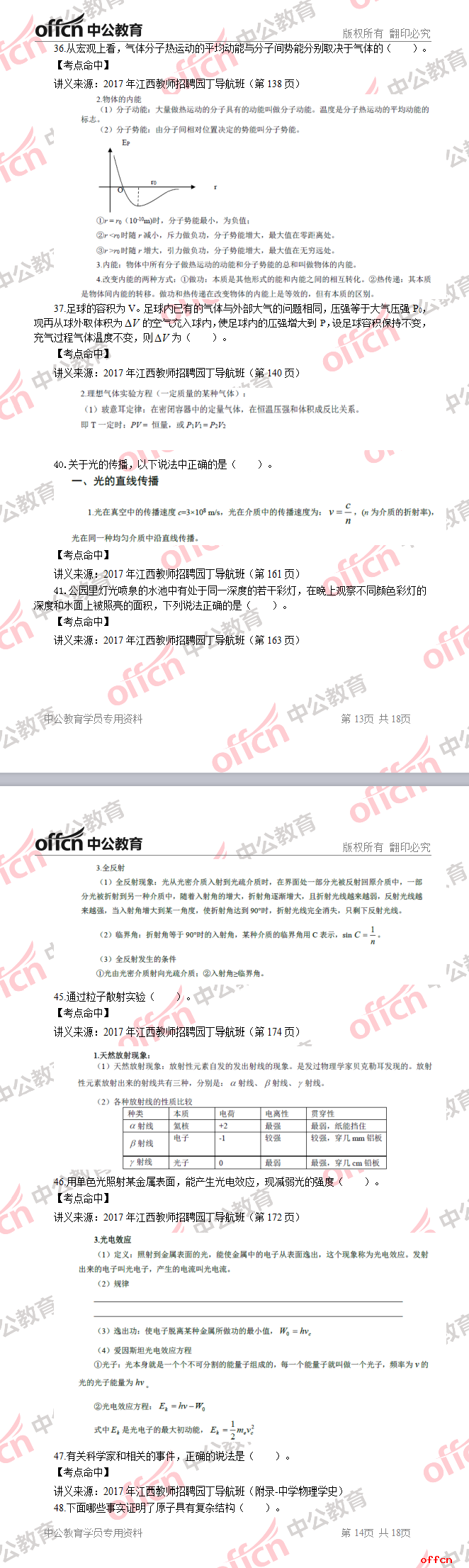 2017年江西教師招聘《高中物理》試題答案及解析