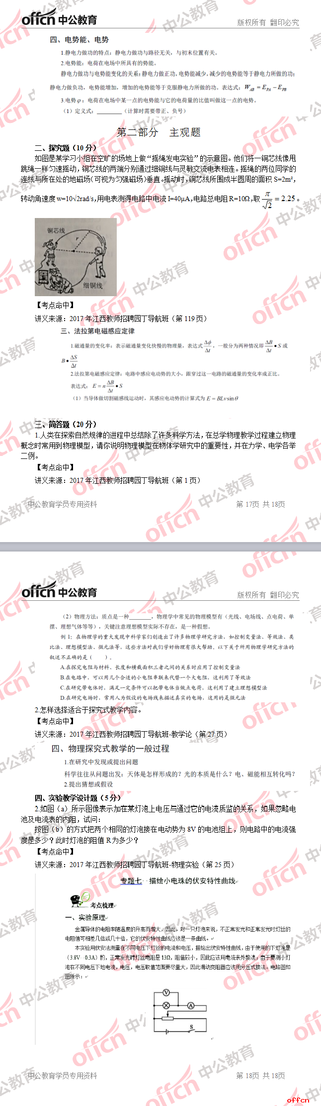 2017年江西教師招聘《高中物理》試題答案及解析
