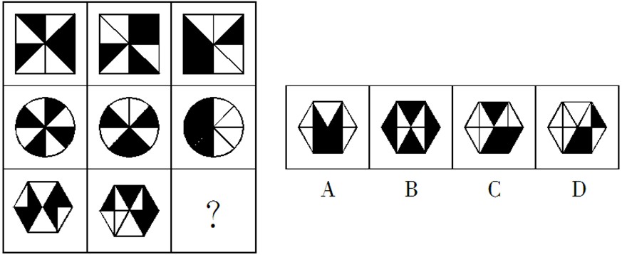 85.從所給的四個(gè)選項(xiàng)中,選擇最合適的一個(gè)填入問(wèn)號(hào)處,使之呈現(xiàn)一定的規(guī)律