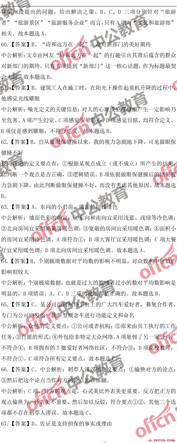 2018吉林公務(wù)員考試行測(甲)歷年參考答案及解析