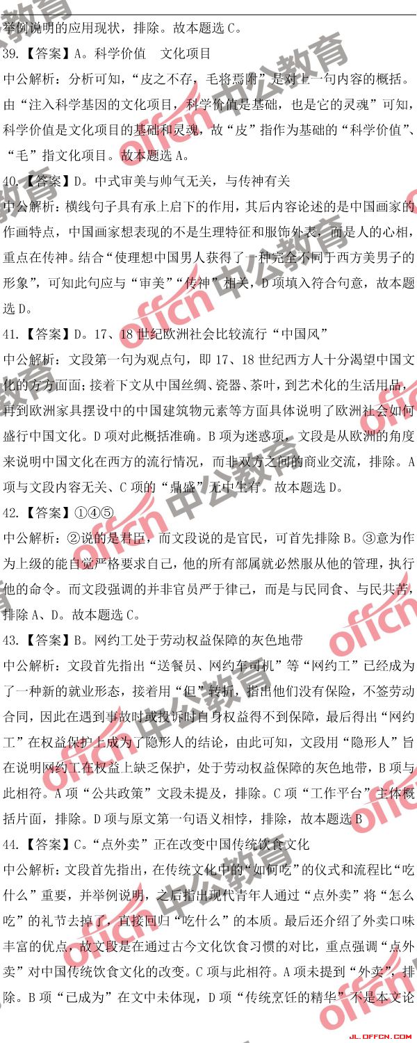 2018吉林公務(wù)員考試行測(cè)(甲)歷年參考答案及解析