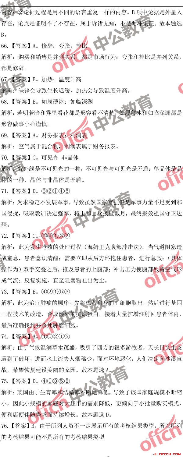 2018吉林公務(wù)員考試行測(cè)(乙)歷年參考答案及解析