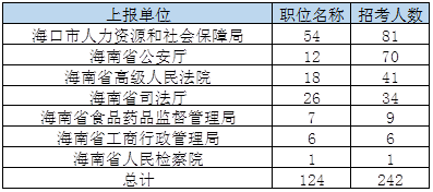 2018海南公務(wù)員考試??谑杏?jì)劃招錄242人,124個(gè)職位,較去年有所減少!