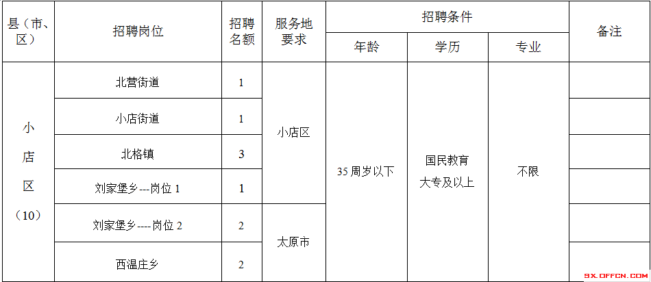 太原小店區(qū)公開招聘鄉(xiāng)鎮(zhèn)(街道)事業(yè)單位工作人員崗位一覽表
