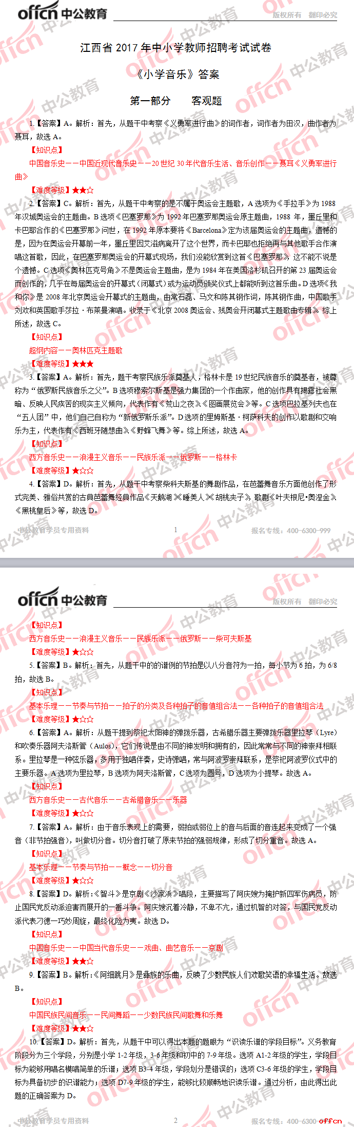 2017年江西教師招聘《小學(xué)音樂》試題答案及解析